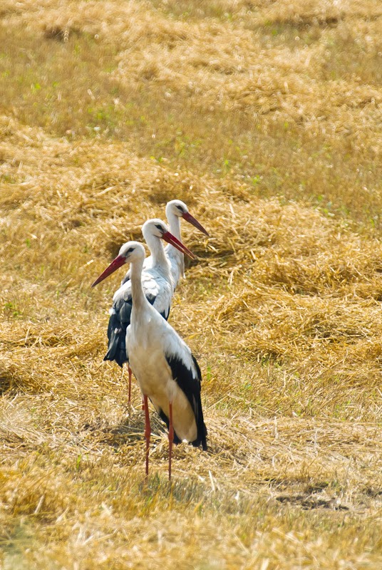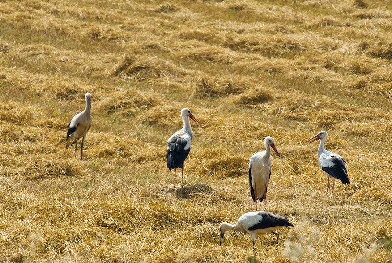 Taka na pozór bezładna grupa bocianów to tak na prawdę wyspecjalizowany zespół do wykrywania myszy. Tu każdy na swoje miejsce i precyzyjnie określone zadanie ...